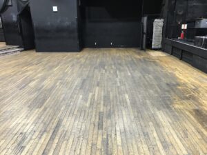 このシステムでは、木を素地まで研磨するので、素地まで染み込んだ汚れだけでなく、フロア上の装飾などもすべて消えます。